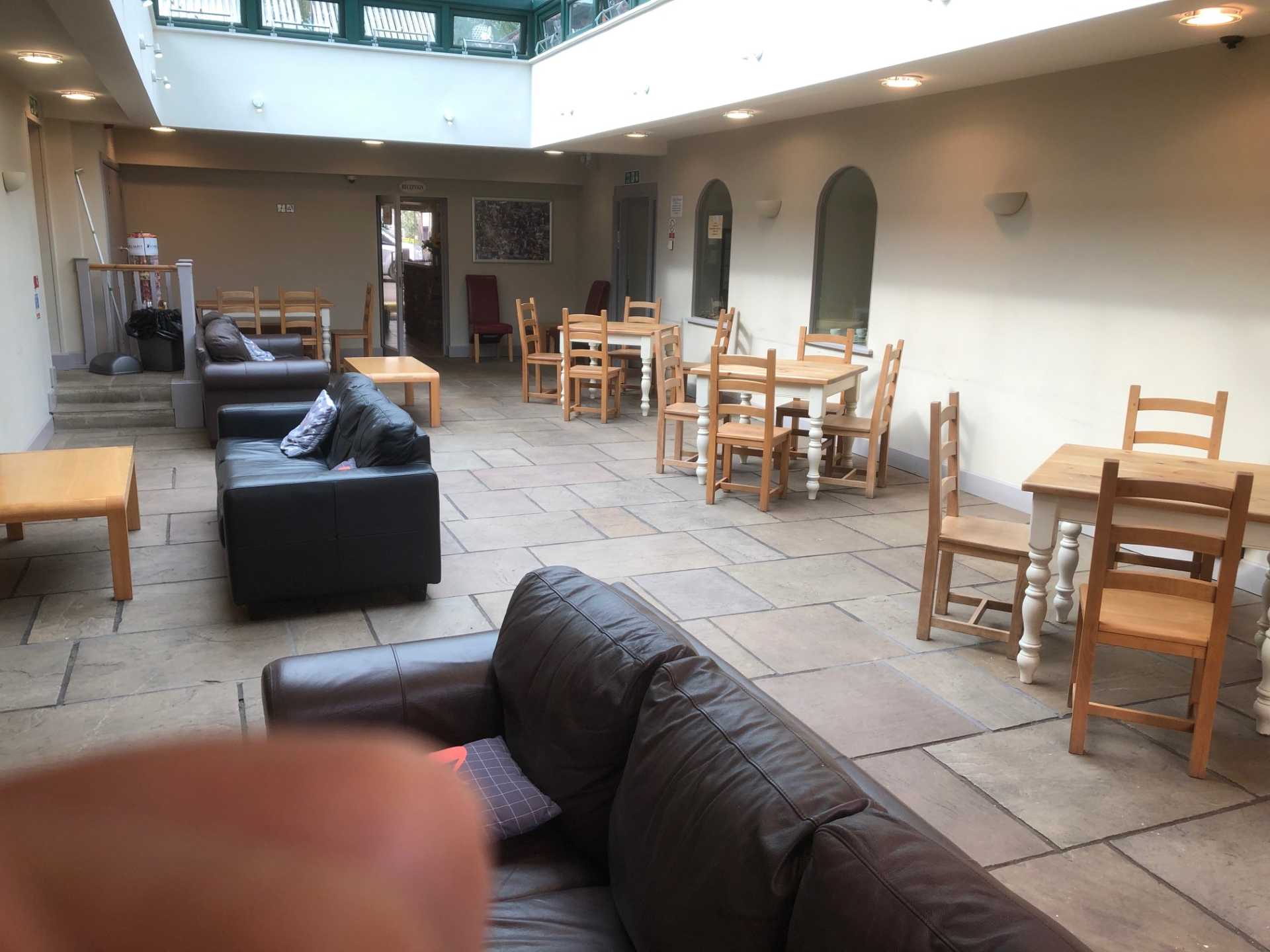You can see from the pictures here that we have reconfigured our tables to comply with the Government guidelines about social distancing. All seating has been set out at between 1.5 and 2 metres apart, and we have utilised as much indoor space as possible, including the games room and the mezzanine area.